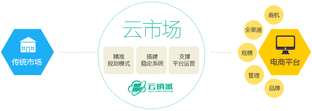 云市场是一个面向上游供应商和下游经销商及商家用户的开放式分销订货购物商城,集合了货源分销和市场零售两大特点的B2B2C+O2O大平台,从行业供应链到终端销售全方位资源优化整合,实现将供应链、商家和用户汇聚,缩短供货商、商家与用户之间的销售距离,更有效的激发交易和采购,实现多方的共赢。量身定制的多供应多店铺的智能电商。