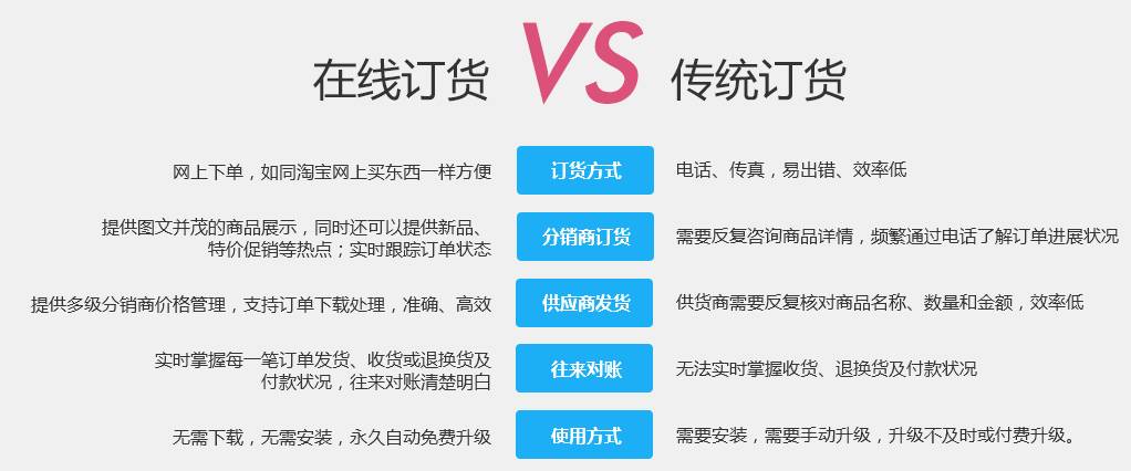 云批发是一个面向供应商经销商企业用户的分销订货平台系统,分为供应商管理后台和客户订货平台两个不同的子平台系统,是经销商专享的B2B2C+O2O的订货平台系统。颠覆传统订货模式,零成本维护客户、管理商品,提高客户忠诚度,提升订货效率,降低人力成本。操作便捷简单,随时随地可交易。