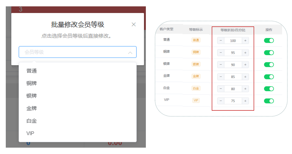 2. 选择修改后的会员等级,设置成功之后,这些会员就可以购买商品就可以享受修改后的等级对应的折扣优惠