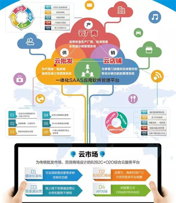 云销城利用SaaS云服务模式帮助厂家、经销商和零售商及交易市场等供应链上下游企业,快速构建企业